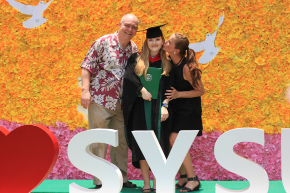 觀禮現(xiàn)場(chǎng)有不少遠(yuǎn)道而來(lái)的父母,看著自己兒女順利畢業(yè),臉上是藏不住的笑意和欣慰。看到女兒在中大四年的學(xué)習(xí)與成長(zhǎng),傳播與設(shè)計(jì)學(xué)院2012級(jí)學(xué)生曾婉鈺的父母說(shuō):“中大的文化沉淀的熏陶和學(xué)術(shù)氛圍很好,非常感激學(xué)校,希望女兒身體力行實(shí)踐家國(guó)情懷的理念,學(xué)好專業(yè)知識(shí),恪守作為一個(gè)記者的職業(yè)操守,為社會(huì)弘揚(yáng)公平公正、為國(guó)家發(fā)展貢獻(xiàn)自己的力量。”