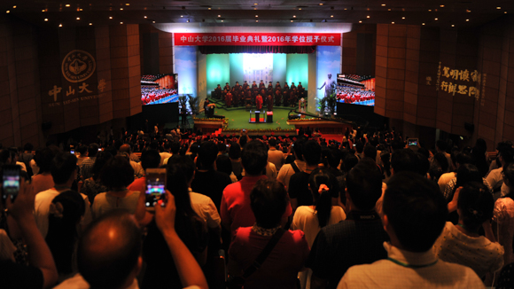 6月25日,夏日依舊燦爛豐盛,中山大學(xué)2016屆畢業(yè)典禮暨2016年學(xué)位授予儀式迎來(lái)了落幕。四天以來(lái),14097名畢業(yè)生一一登上主禮臺(tái),與羅俊校長(zhǎng)握手,接受大學(xué)校長(zhǎng)頒授的畢業(yè)紀(jì)念冊(cè),開(kāi)啟了通往新旅程的大門(mén)。