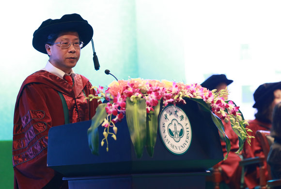 管理學(xué)院的毛蘊(yùn)詩(shī)教授今年已是第八次執(zhí)中山大學(xué)權(quán)杖。他表示既榮幸又高興,不僅為學(xué)校培養(yǎng)出的學(xué)生學(xué)業(yè)有成而開(kāi)心,也為學(xué)校發(fā)展越來(lái)越好而高興。毛蘊(yùn)詩(shī)教授說(shuō),畢業(yè)典禮是莊嚴(yán)神圣的場(chǎng)合,對(duì)于畢業(yè)生來(lái)說(shuō),畢業(yè)典禮是他們新的起點(diǎn)。毛教授勉勵(lì)畢業(yè)生們,“畢業(yè)之后要多為社會(huì)做貢獻(xiàn),以己所能,為祖國(guó)貢獻(xiàn)出自己的一份力量,為國(guó)爭(zhēng)光。”