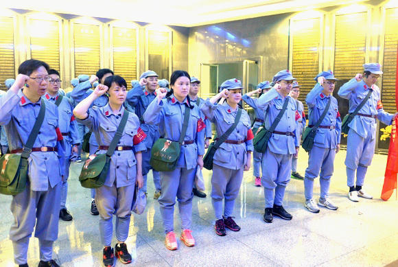 本次培訓班內容豐富,形式多樣。井岡山革命博物館館長肖郵華老師為培訓班學員進行了“井岡山斗爭與井岡山精神”專題講座,系統地講解了毛澤東等老一輩無產階級革命家率領中國工農紅軍開展艱苦卓絕的井岡山斗爭,一個個革命英雄故事震撼人心,感人肺腑;“三灣改編”情景教學,讓學員們深刻地體會到黨的領導是革命事業成功的根本保證;在莊嚴肅穆的井岡山革命烈士陵園,學員們憑吊革命英烈,向革命先烈敬獻花圈,鞠躬致敬,在悼念廳的革命先烈名錄前聆聽革命烈士的感人故事,重溫入黨誓詞,深刻感悟到堅定的革命信仰是革命成功的偉大精神支柱;在現場教學環節,學員們先后參觀了八角樓,喬林鄉黨支部舊址,茨坪革命舊址,大井毛澤東、朱德同志舊居,小井紅軍醫院等革命舊址;在體驗教學中,學員們荷槍挑糧,沿著朱毛挑糧小道,克服天氣炎熱、山高坡陡的重重困難,長途跋涉到達黃洋界,體會了紅軍不怕困難、艱苦奮斗的作風和革命意志等。