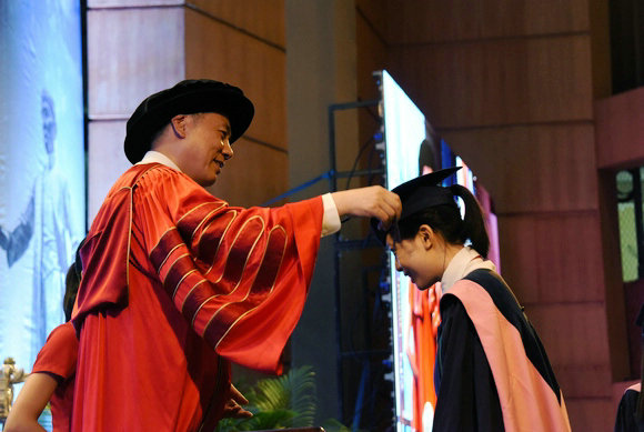 7月4日,當鳳凰花再度火熱綻放于康樂園時,我們如約相聚在梁銶琚堂,拉開2015年畢業季的序幕。連續四天的時間里,來自四個校區的14073名畢業生將逐一登臺,在聚光燈下接受來自校長和主禮教授的祝福,完成這一神圣而莊嚴的儀式。神秘的魔法權杖,沉甸甸、金燦燦的畢業紀念冊,師長們慈愛的目光,親友們溫暖的陪伴與祝福……都一一烙入畢業生們的腦海,成為他們前進路上最寶貴的禮物。