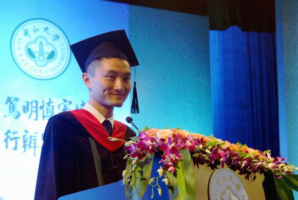 楊孟衡校友在學位授予儀式上演講(楊天益、蔡珊珊 攝)
