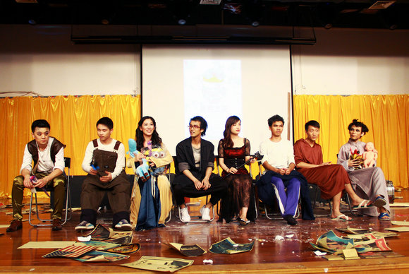 幕布緩緩落下,臺下響起雷鳴般的掌聲,真的沒有覺得結(jié)束,大學四年在話劇社的點滴仿佛又浮現(xiàn)在眼前。大一的我初生牛犢不怕虎,編導演《莎菲女士的日記》參加中文系五月花海話劇大賽,竟然憑該劇獲得中文系“最佳編劇”。大二,編導作品《我在1949等你》代表中文系參加2011年中山大學珠海校區(qū)話劇小品大賽,這部在一夜寫成的劇作竟然又讓我獲得了當年珠海校區(qū)的“最佳編劇”。在香港交換期間,即使要繳納會費,我也忍不住加入嶺南大學劇社,參加新生匯演,后來原創(chuàng)作品《純真年代》被選為2013年嶺南大學周年公演的劇本。從香港歸來,我在南校區(qū)延續(xù)著話劇之路,也有了大家看到的畢業(yè)大戲《暴君之死》。