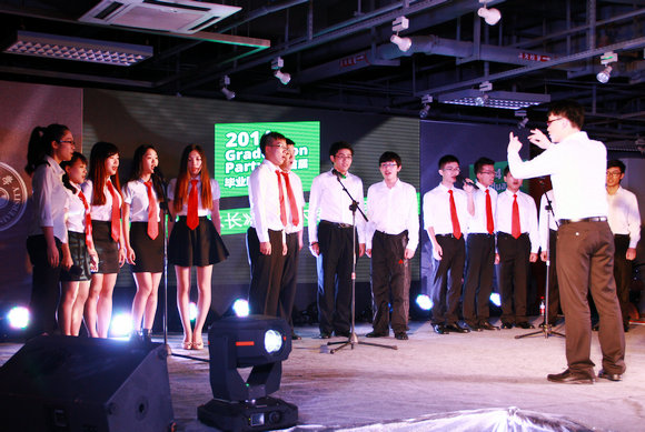 2014屆畢業生在東校區首場校區畢業晚會上傾情演唱《山高水長》(攝影:陳傳森)