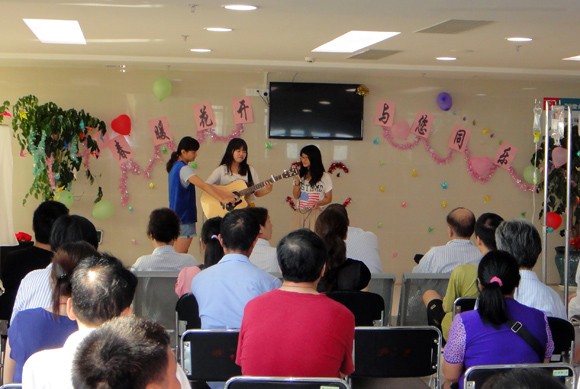 在洪蘇金老師的鼓舞下,現場另外一位老先生登臺獻唱了歌曲《愛拼才會贏》,并與志愿者合唱歌曲《千千闕歌》,向在座的人傳遞了滿滿的正能量。