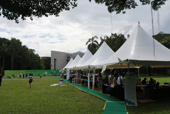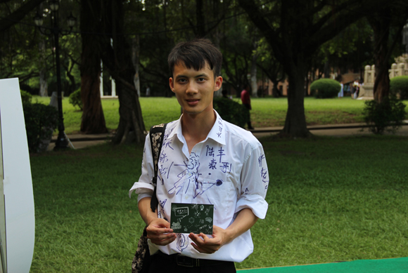 雨后青草,在陽光下閃爍微光,泥濘的草地上快門聲此起彼伏,這是中山大學2013年畢業嘉年華的現場。明信片、時光囊、中大T恤、徽章等等,白色大帳篷下人頭攢動;留言墻上龍飛鳳舞,瀟灑字跡承托畢業騰飛愿景;留影花墻燦爛奪目,記錄下幸福時刻。