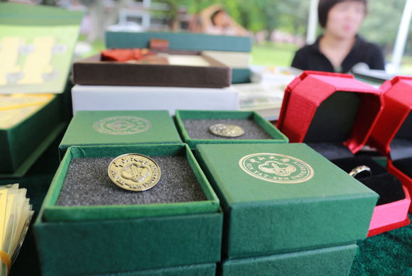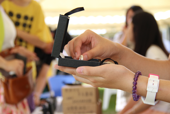 戒指設計簡約大氣,金屬指環鐫刻上年份2013和英文“SUN YAT-SEN UNIVERSITY”。簡簡單單,如同告別——無需過多言語只是輕輕放在心里。作為“中大1924”的負責人,這款戒指不僅成為他們對中大的承諾,更為中大學子創造出一份新的文化記憶。據悉,這款紀念戒指自上市以來,已售出數百套,反響熱烈,不僅是今年的畢業生,連尚未畢業的學子們和已畢業校友們都熱烈搶購,不少情侶到中大1924攤位前選購戒指,更調侃這是一款求婚圣品。