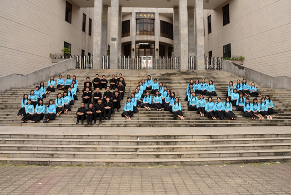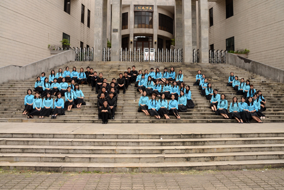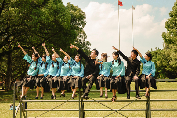 畢業照是畢業季一道最為亮麗的風景。09級管理學院會計專業的陳曉陽,鄭曼琳,鄭裕強,張豐四位同學,不辭辛苦組織同學集體拍攝了一組班級民國風畢業照。其中,在永芳堂階梯上拍攝的“SYSU”字樣畢業照,整齊精準的字母隊列令人嘆然,而藍衣黑裙的姑娘和一襲黑色中山裝的少年令復古與青春完美結合。這張照片上傳到微博后,引發同學們的熱議,網友@lxhduck打趣道“女孩子多啊,聽說現在很多家庭也是女方理財,看來是在大學里培養好的”。對于3:1的男女比例,不少人調侃“報錯專業毀一生”。