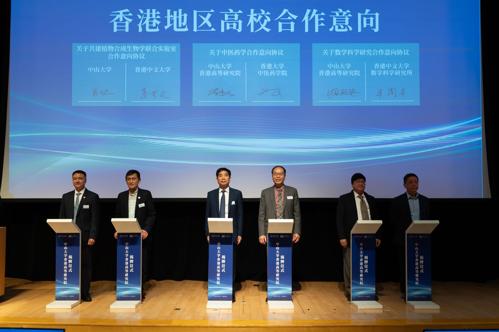 教育部副部長王嘉毅、中央政府駐港聯絡辦副主任羅永綱、中央政府駐港聯絡辦科技部部長王偉明、廣東省教育廳副廳長馮偉、香港教育局局長蔡若蓮,中山大學校長高松、常務副校長楊清華、副校長鄭躍、副校長謝湜、香港高等研究院院長徐安龍共同為中山大學香港高等研究院揭牌