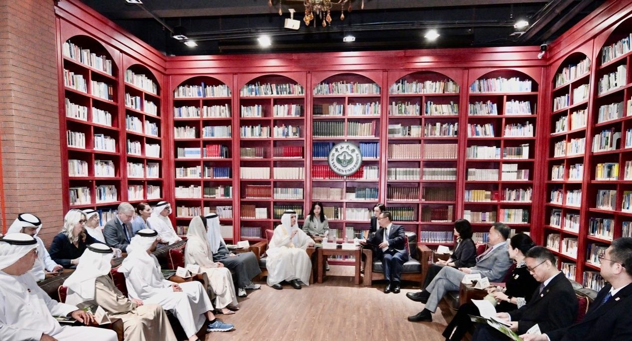 中大新聞網訊(通訊員劉英杰)2024年11月19日,阿拉伯聯合酋長國聯邦最高委員會成員、哈伊馬角酋長——謝赫薩歐德·本·薩格爾·卡希米殿下及其代表團一行來訪中山大學。中山大學黨委書記朱孔軍在南校園圖書館學人文庫與來賓舉行會談。隨后卡希米酋長在懷士堂參加了主題為“共筑文化橋梁:中國與阿聯酋的友誼與合作”的學生交流活動。廣東省外事辦公室錢紅潔副主任、阿拉伯聯合酋長國駐華大使侯賽因·哈馬迪先生、阿拉伯聯合酋長國駐廣州總領事瑪爾妍·尚穆希女士陪同此次來訪,中山大學常務副校長肖海鵬教授、黨委副書記張琪教授等校領導陪同出席本次活動。