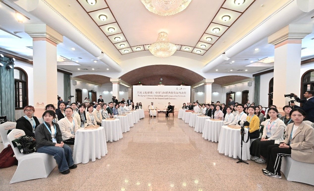 在懷士堂,卡希米酋長參加了共筑文化橋梁:中國與阿聯酋的友誼與合作的學生交流活動。卡希米酋長表示,自己和中國淵源頗深,自己曾多次到訪中國,親眼見證了中國近幾十年來的快速發展與巨大變化。哈伊馬角擁有阿聯酋最高的工業水平,也是發展最快的自由貿易區之一,中阿合作前景廣闊。卡希米酋長還分享了他在哈伊馬角推動文化教育發展方面的經驗和做法。他認為,人文教育領域的合作交流在促進國家之間的深厚友誼發揮著重要的橋梁作用和積極影響,教育對于國家治理和未來發展尤為重要,未來的希望在年輕一代身上。互動環節在場同學踴躍提問,卡希米酋長都給予了積極的回應。這次交流活動讓中大學子對哈伊馬角等阿聯酋國家的文化有了更深入直觀的了解,激發了他們對于跨文化交流的興趣和熱情。交流活動由張琪副書記主持并總結,她表示文化之間的交流總是充滿智慧和啟迪,并希望能夠將當下共筑的中阿友誼延續到未來的每一天。