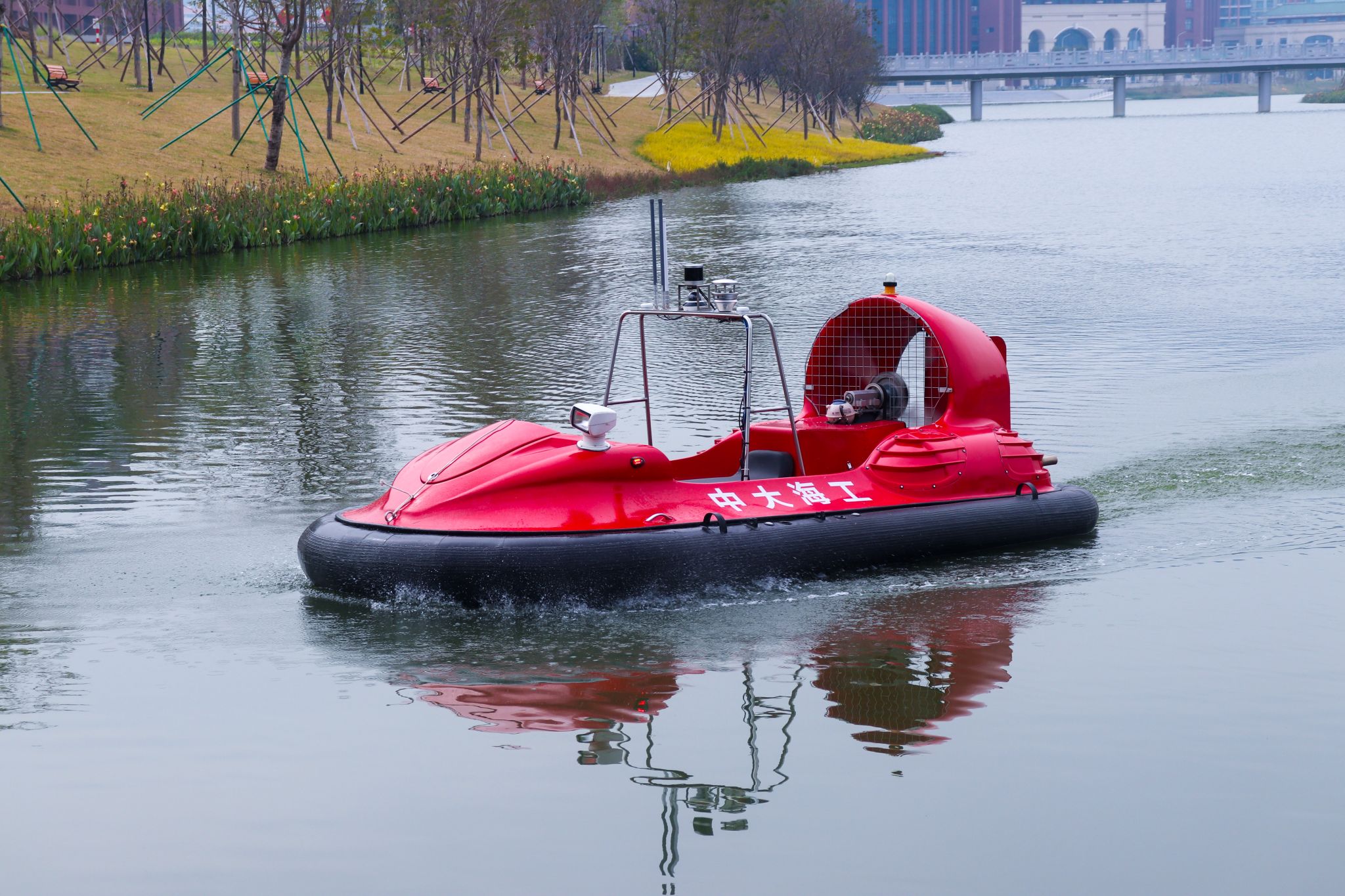 氣墊無人艇“紅歡1號(hào)”湖泊演示