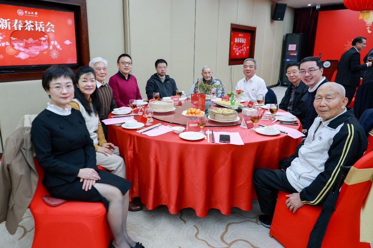 中大新聞網訊廣州1月10日電(記者劉俊鵬 攝影肖遙)律回春暉漸,萬象始更新。在辭舊迎新和農歷新春到來之際,1月8日,中山大學在廣州校區南校園舉辦2025年歷任校領導新春茶話會,慰問部分在穗老校領導和老同志。校領導朱孔軍、高松、楊清華、邰忠智、王帆、鄭躍、張琪出席活動,代表學校向大家送上新年祝福。歷任校領導王珣章、許發茂、許學強、黃達人、鄭德濤、許寧生、許家瑞、胡守為、張純祥、魏聰桂、張榮芳、樊筑生、徐遠通、陳騰華,廣東省政協原副主席張展霞歡聚一堂,共憶往昔、共迎新春。朱孔軍書記主持活動。