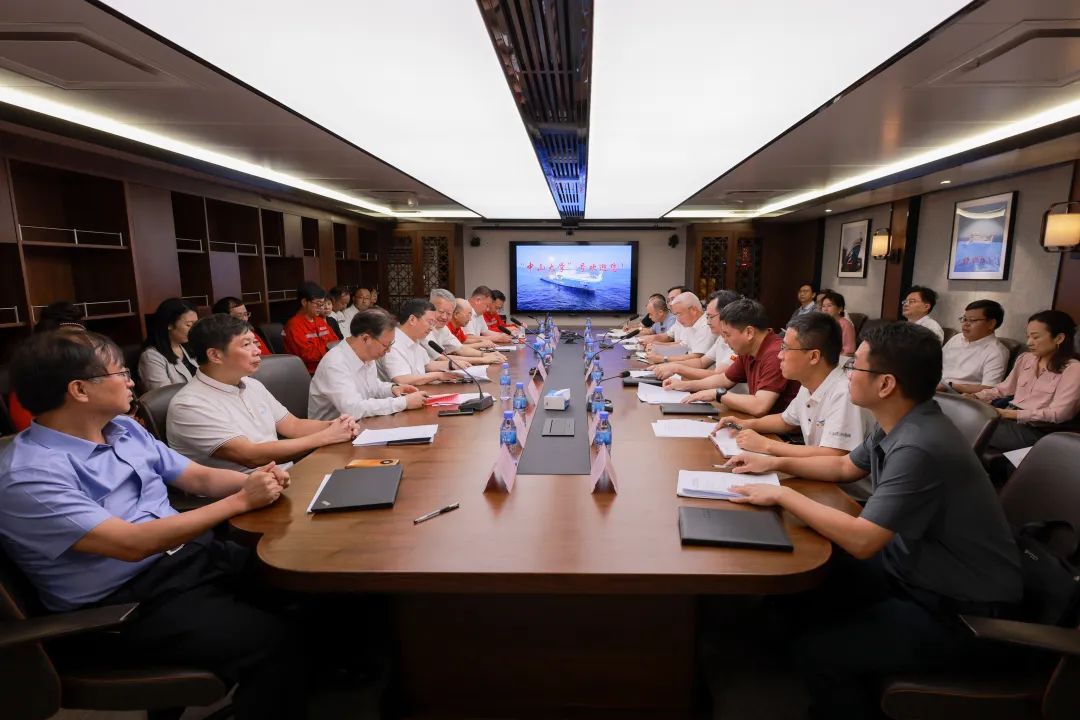 在“中山大學”號科考船會議室,陳春聲書記、高松校長與前來拜會的三沙市委書記袁光平、市長鄧忠一行座談,就進一步加強交流合作進行了深入研討。