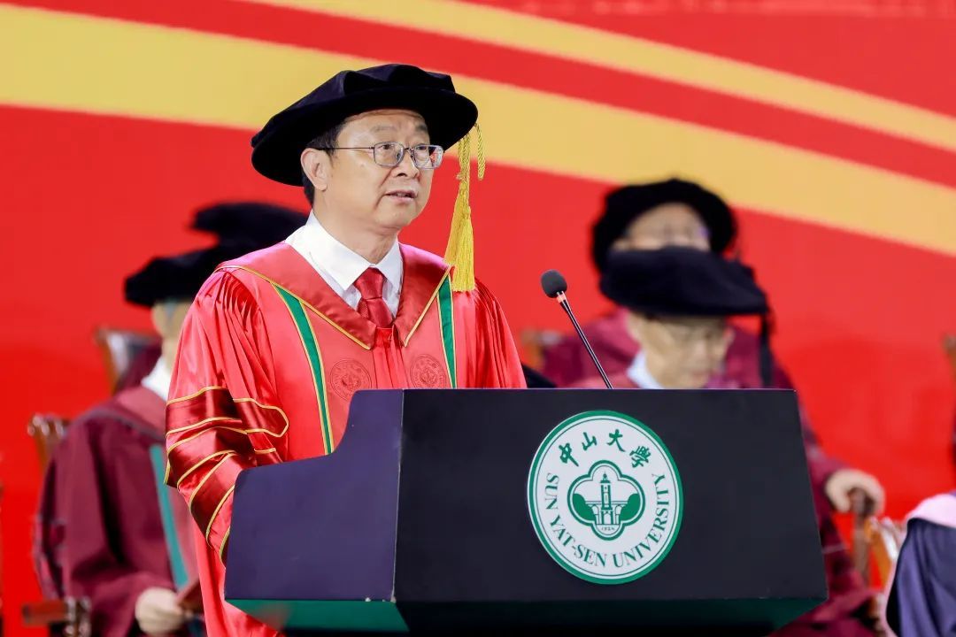 今天,對于在場和線上的每位畢業的同學而言,都是值得永遠紀念的日子。你們也是我擔任中山大學校長以來,即將送走的第一批畢業生,你們的校齡比我的長。我和老師們為你們學成畢業感到欣喜,也為你們即將離別依依不舍。中大校園每一處都保存著你們奮發求學的青春記憶,每一處都印刻著你們不負韶華的拼搏足跡。中大永遠是你們的中大,中大也相信,你們將會成為中大的驕傲!