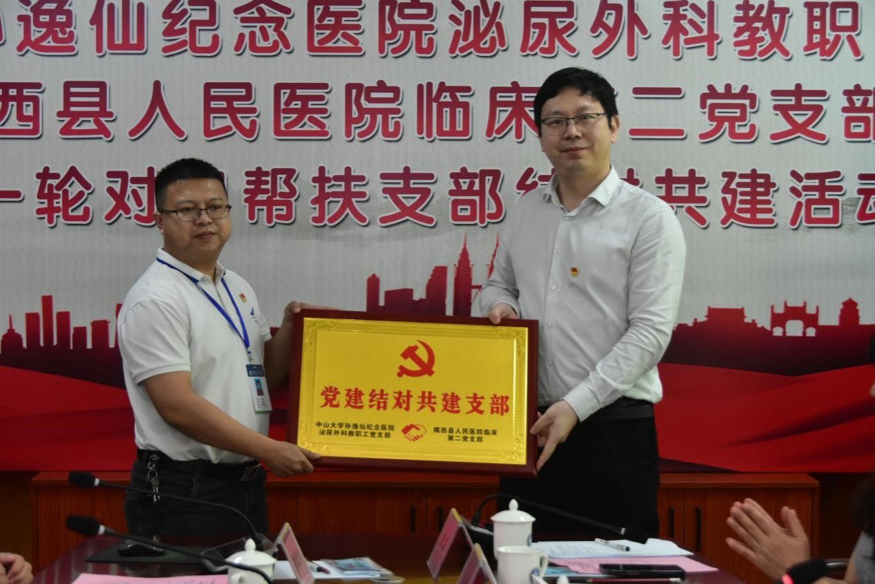 為發揮黨建引領作用和支部示范作用,7月13日下午,教育部第三批全國黨建工作示范樣板支部培訓創建單位——孫逸仙紀念醫院泌尿外科教職工黨支部和揭西縣人民醫院臨床第二黨支部舉行了“黨建結對共建支部”授牌儀式。支部書記黃海教授總結了過去幾年的幫扶成效,并介紹了下一步黨支部共建的思路和幫扶計劃。雙方與會黨員開展了交流。