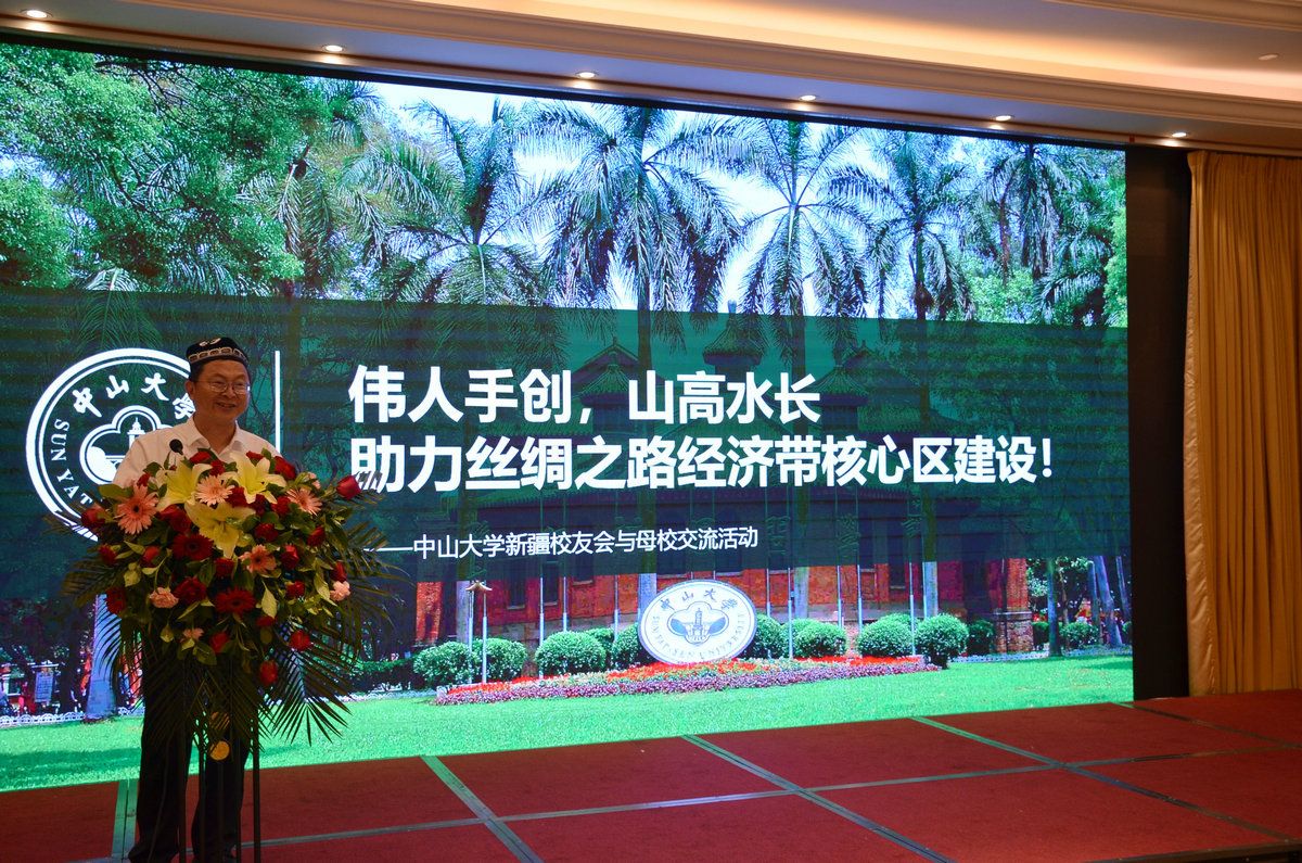 86級中山醫校友、中山大學新疆校友會會長買爾旦隨后致辭。他指出,在新疆這片土地上,有200余位中大校友遍布各個地州,奮斗在各行各業,為新疆建設貢獻應有力量。新疆校友會將充分整合校友資源,不斷凝聚校友智慧和力量,為母校的發展貢獻綿薄之力。