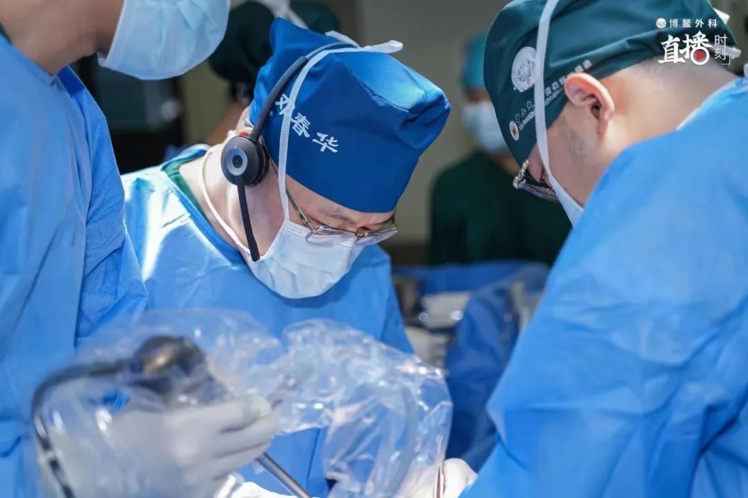 開幕式后,首場手術直播正式開始。首日,泌尿外科、婦科、肝膽胰外科中心、神經外科、胸外科五大學科的21位外科高手,開展了包括“機器人輔助腎部分切術”“腹腔鏡下宮頸癌根治術”“經典胰十二指腸切除術”“AR鏡下導航前交通動脈瘤夾閉術”“機器人輔助右上肺葉切除術+肺門縱膈淋巴結清掃術”在內的30臺手術。