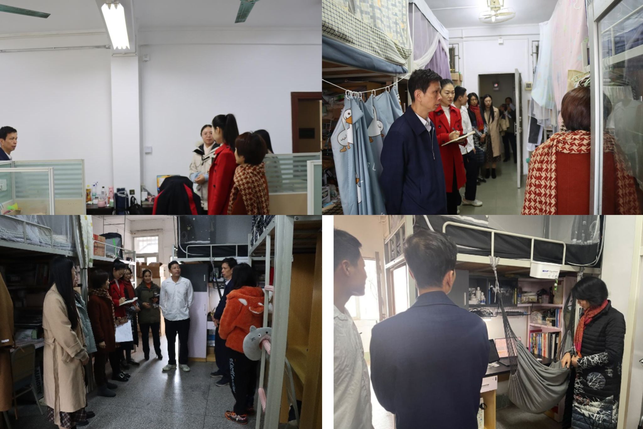 檢查組在研究生自習室和學生宿舍檢查