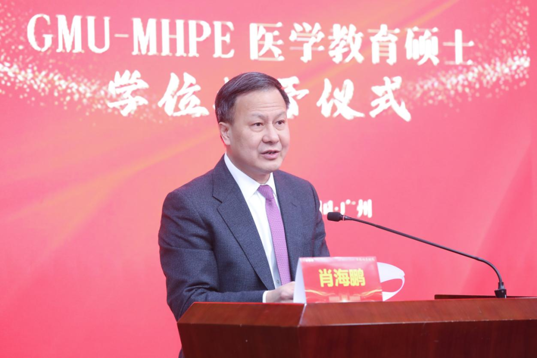 肖海鵬院長在學位授予儀式上對醫(yī)學教育碩士學位獲得者表示熱烈的祝賀,對他們在學習期間取得的成績表示充分的肯定。他表示,中山一院和海灣醫(yī)科大學通過“臨床教育家孵化計劃”(Clinical Educator Program,CEP)建立了卓越合作關系,該項目證明了國際合作在促進創(chuàng)新和推動變革方面的力量,為教學骨干們創(chuàng)建了一個交流、學習和共同成長的平臺。此次醫(yī)院18位教學骨干被授予醫(yī)學教育碩士學位是醫(yī)院師資隊伍建設的標志性成果,他們將為中山大學及中山一院的醫(yī)學教育發(fā)展注入新的活力。他強調,中山一院將繼續(xù)加大對醫(yī)學教育人才的培養(yǎng)力度,賡續(xù)中山醫(yī)重視教學的優(yōu)良傳統(tǒng),以國際合作助力中山大學以及中山一院醫(yī)學教育的高質量發(fā)展。