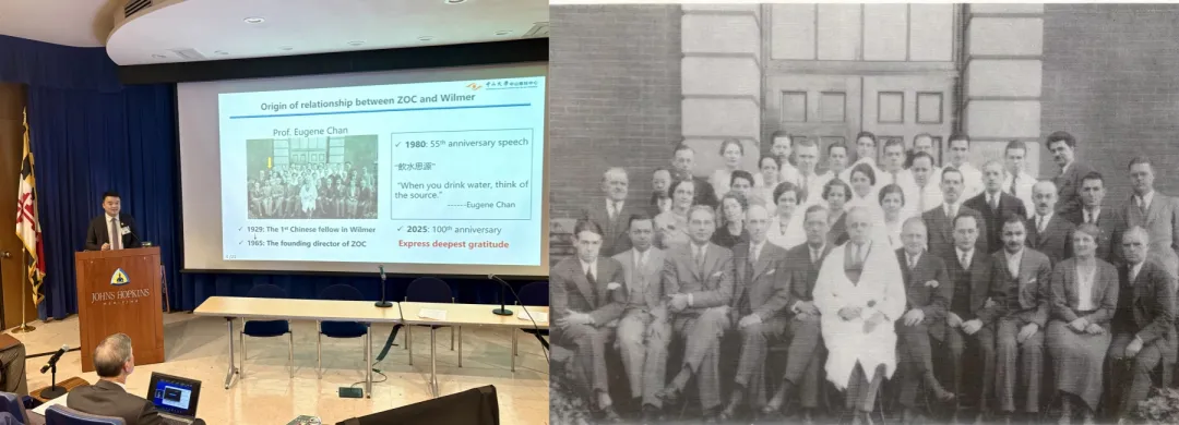 左圖:林浩添教授在訪問交流中介紹中山眼科和Wilmer眼科研究所的淵源