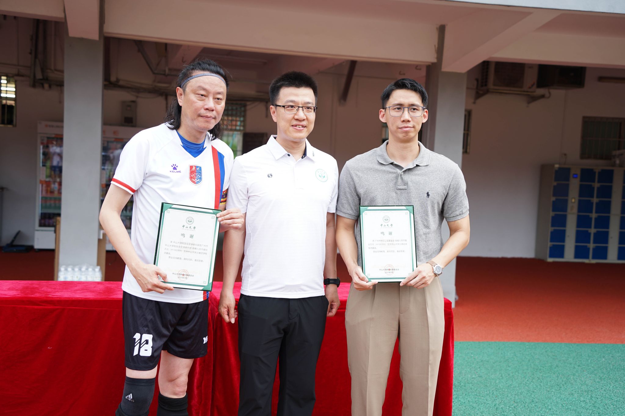 6月19日,中山大學沙灘足球隊還獲得了一對熱心校友伉儷慷慨捐贈。