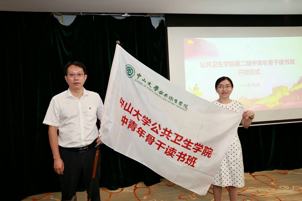 夏敏院長為中青年骨干讀書班授班旗(來源:公共衛(wèi)生學(xué)院)