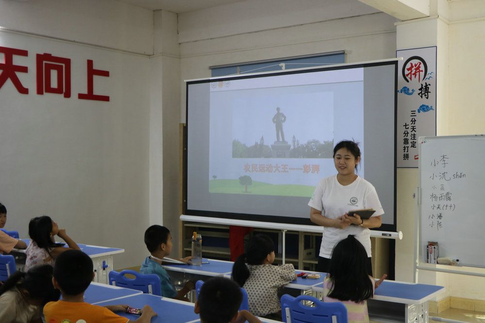 8月24日上午,師生一行來到深汕特別合作區赤石鎮圓墩村,走進村里的“四點半”課堂,開展支教活動。支教隊員通過播放影像資料、族譜繪制、趣味競答等方式,講述了彭湃的革命事跡及其家族一門多烈士的英勇壯舉,在小朋友們的心中埋下了一顆紅色的種子。