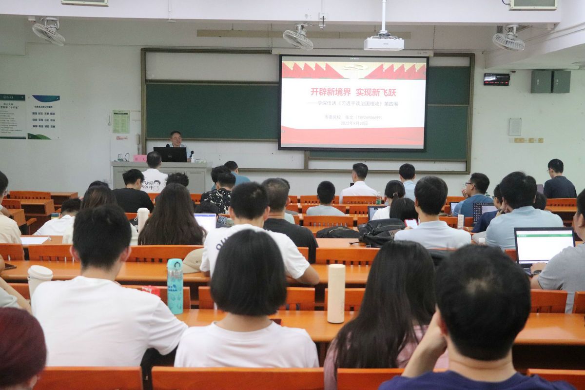 中大新聞網廣州9月29日電(通訊員馬浩然)在喜迎黨的二十大召開之際,為進一步凝心聚力,提升理論學習成效,測繪科學與技術學院黨委邀請珠海市委黨校黨史黨建教研室主任張文老師于9月28日在珠海校區教學樓C207開展學習《習近平談治國理政》第四卷專題講座。講座采取線上與線下相結合的方式進行,學院黨委書記林偉庭、院長程曉等院領導、全院師生黨員、入黨積極分子及發展對象共100余人參加學習。講座由林偉庭書記主持。