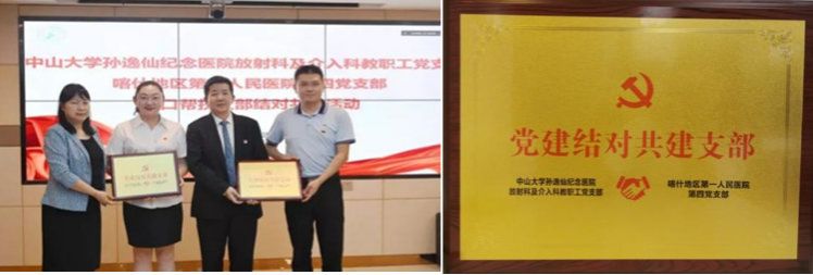 在幫扶邁入十年期之際,2022年7月,孫逸仙紀(jì)念醫(yī)院放射科及介入科教職工黨支部與喀地一院第四黨支部正式結(jié)為黨建結(jié)對共建支部。通過結(jié)合支部特長、專科特色,協(xié)同開展乳腺癌等方面疾病的影像學(xué)研究,精分細(xì)化“專病專治”,助力科室學(xué)科發(fā)展駛?cè)肟燔嚨溃M(jìn)一步提升喀地一院人才培養(yǎng)和學(xué)科建設(shè)質(zhì)效。