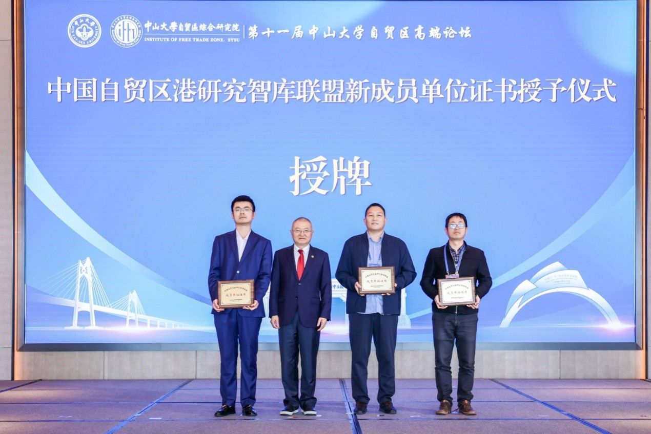 論壇現場,正式發布了《2023-2024年度中國自由貿易試驗區發展報告》,同時舉行了在“2023-2024年度中國自由貿易試驗區制度創新十佳案例”頒獎環節和中國自貿區港研究智庫聯盟新成員單位證書授予儀式。李善民為來自對外經濟貿易大學、云南大學和東北財經大學三個新成員單位代表授予了聯盟成員證書。