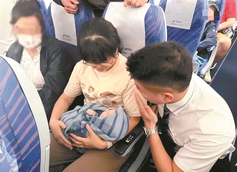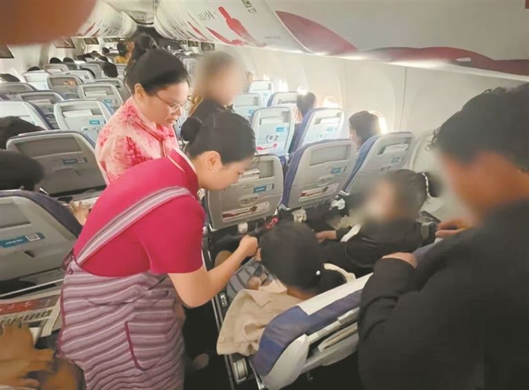 “孩子在嚴重的基礎疾病上疊加了進食嚴重不足,目前處于明顯的脫水狀態,若不及時干預,將難以支撐余下的五小時航程!”因為飛機上醫療條件有限,所以無法像在醫院里一樣插胃管和建立靜脈通道補液,梁崎當機立斷讓患兒經口補水。蔡霞指導機組人員調配好適當濃度的糖水,裝入奶瓶,梁崎抱著患兒,小心又精準地把糖水一滴滴地滴入患兒口腔一側,及時補充水分并經過醫護們全程細心關照后,患兒黏膜逐漸濕潤,漸漸安靜放松下來。隨后,飛機安全抵達廣州,此時患兒生命體征已經趨于穩定,順利轉入醫院接受后續治療。
