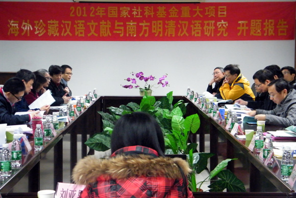 2013年1月5日,中文系李煒教授主持的2012年度國(guó)家社科基金重大項(xiàng)目“海外珍藏漢語(yǔ)文獻(xiàn)與南方明清漢語(yǔ)研究”(項(xiàng)目批準(zhǔn)號(hào)12& ZD178)開(kāi)題報(bào)告會(huì)在南校區(qū)舉行。來(lái)自海內(nèi)外各地的課題組成員參加了會(huì)議。開(kāi)題報(bào)告會(huì)由我校唐鈺明教授、周小兵教授、朱其智教授,暨南大學(xué)邵敬敏教授、彭小川教授擔(dān)任評(píng)議專(zhuān)家。