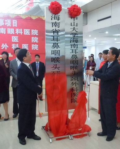 2012年7月5日,海南省人民政府與中山大學簽訂了醫(yī)療衛(wèi)生合作協(xié)議。根據(jù)雙方協(xié)議,海南省人民政府委托中山大學中山眼科中心運營管理新組建的海南省眼科醫(yī)院,并以“中山大學中山眼科中心海南眼科醫(yī)院”為醫(yī)院的第一名稱,以四年內(nèi)建成三級甲等眼科醫(yī)院為發(fā)展目標,不斷提高海南省眼科醫(yī)療和科研水平,為海南人民提供優(yōu)質(zhì)、專業(yè)的眼科醫(yī)療服務;委托我校附屬第一醫(yī)院技術扶持海南省耳鼻咽喉頭頸外科醫(yī)院,附屬一院將提供技術和人才支持,派駐技術骨干開展醫(yī)療技術、護理技術、科研和教學全方位的扶持工作,促進海南耳鼻咽喉頭頸外科醫(yī)療和科研、教學水平的提升。