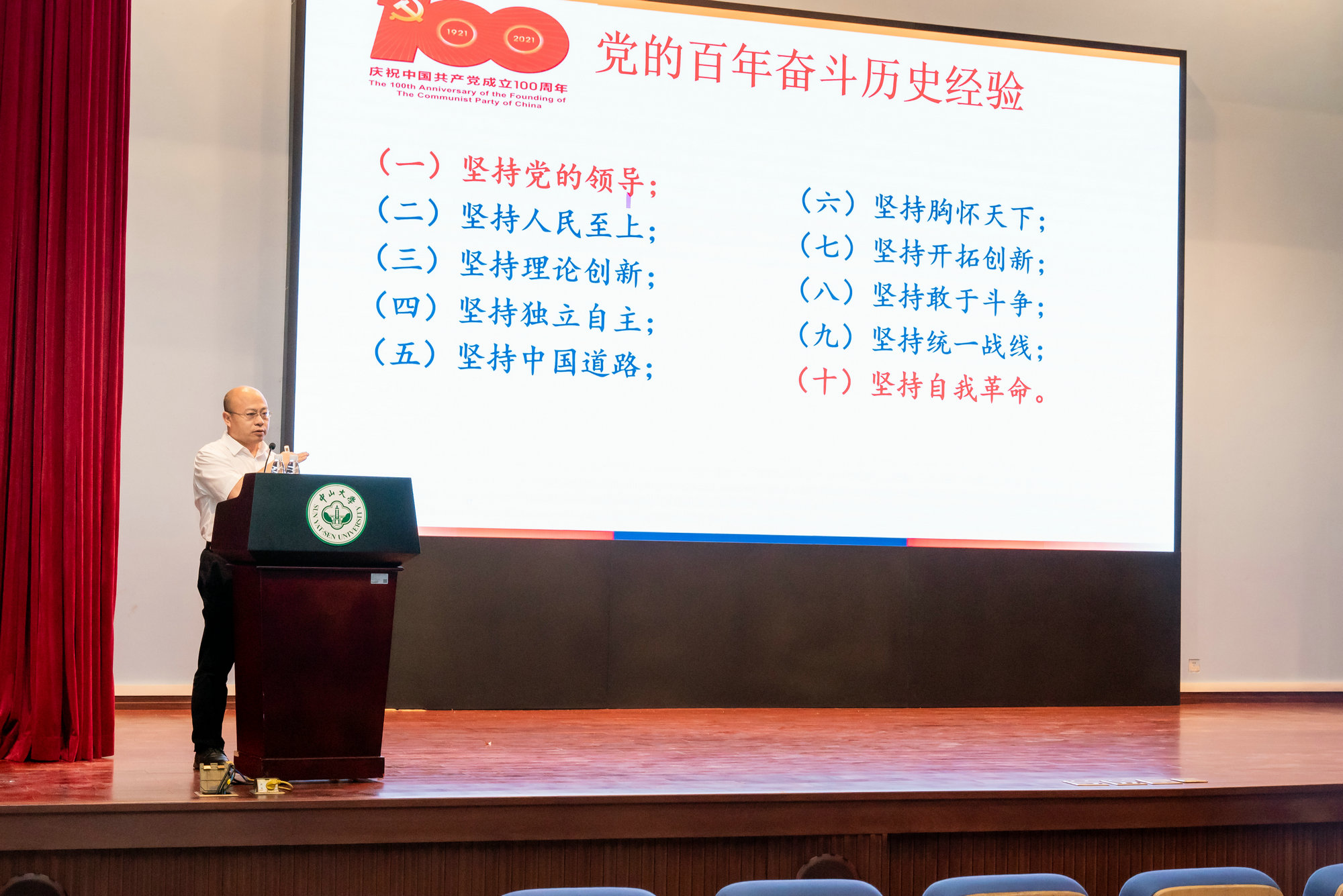 自黨的十九屆六中全會召開以來,學校黨委高度重視學習宣傳貫徹落實黨的十九屆六中全會精神,已連續舉辦四場全體中層領導人員學習貫徹黨的十九屆六中全會精神暨黨史學習教育專題輔導報告,形成常態化長效化的學習教育機制,進一步推動黨的十九屆六中全會精神走深走實,切實提升黨員干部的政治素養,激發黨員干部以更加昂揚的精神狀態和更加務實的行動,將學校高質量內涵式發展推向前進!