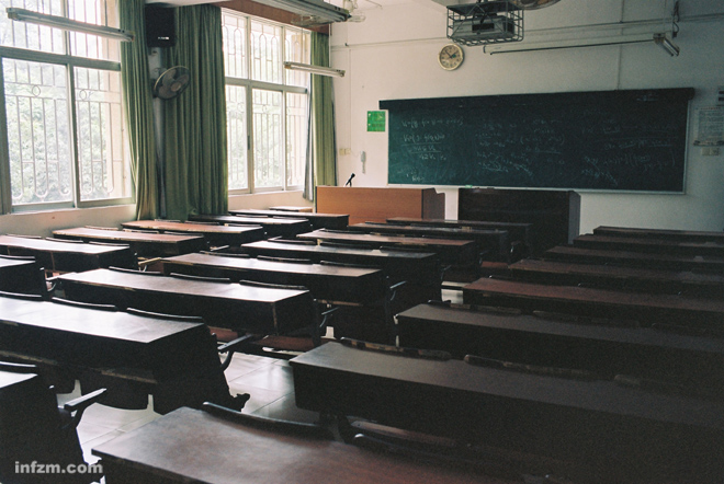 有一天經過教學樓,然后想到,我拍了兩年校園風光,怎么居然沒想過要進教學樓拍一次?那時正是上課的時候,很多教室都擠滿了人(當然也有寥落的)。我找到一間空教室,安靜得能聽得見我按下快門時發出的聲音。我們在這里讀書寫字,瞌睡走神。每年的六月,總會有人來到此處,懷著念想,當年坐在我隔壁的你,明天要到哪里去?