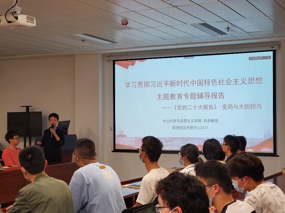 中大新聞網廣州5月7日電(通訊員江華君)4月27日下午,物理與天文學院黨委舉辦學習貫徹習近平新時代中國特色社會主義思想主題教育第一期讀書班。馬克思主義學院劉燕教授應邀作《<黨的二十大報告>——變局與大國擔當》的專題輔導報告,學院中層領導人員及師生黨員約90人在兩個會場同步參加學習。學院黨委書記郝雅娟主持會議。