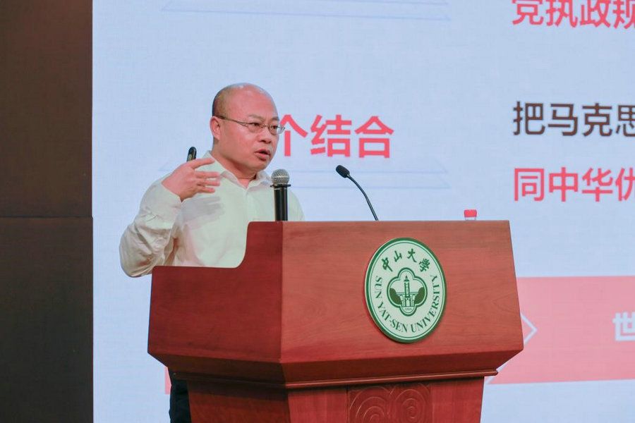 中大新聞網廣州5月14日電(記者梁寧寧)5月9日,中山大學黨委學習貫徹習近平新時代中國特色社會主義思想主題教育讀書班專題輔導報告暨黨委理論學習中心組學習會在廣州校區南校園懷士堂舉行。會議同時在廣州校區北校園、東校園,珠海校區,深圳校區,10家附屬醫院設置視頻直播分會場。學校主題教育領導小組組長、校黨委書記陳春聲,校黨委副書記、校長高松,全體在校校領導,校院兩級黨委理論學習中心組成員,職能部門正副職在主會場及各分會場參加會議。