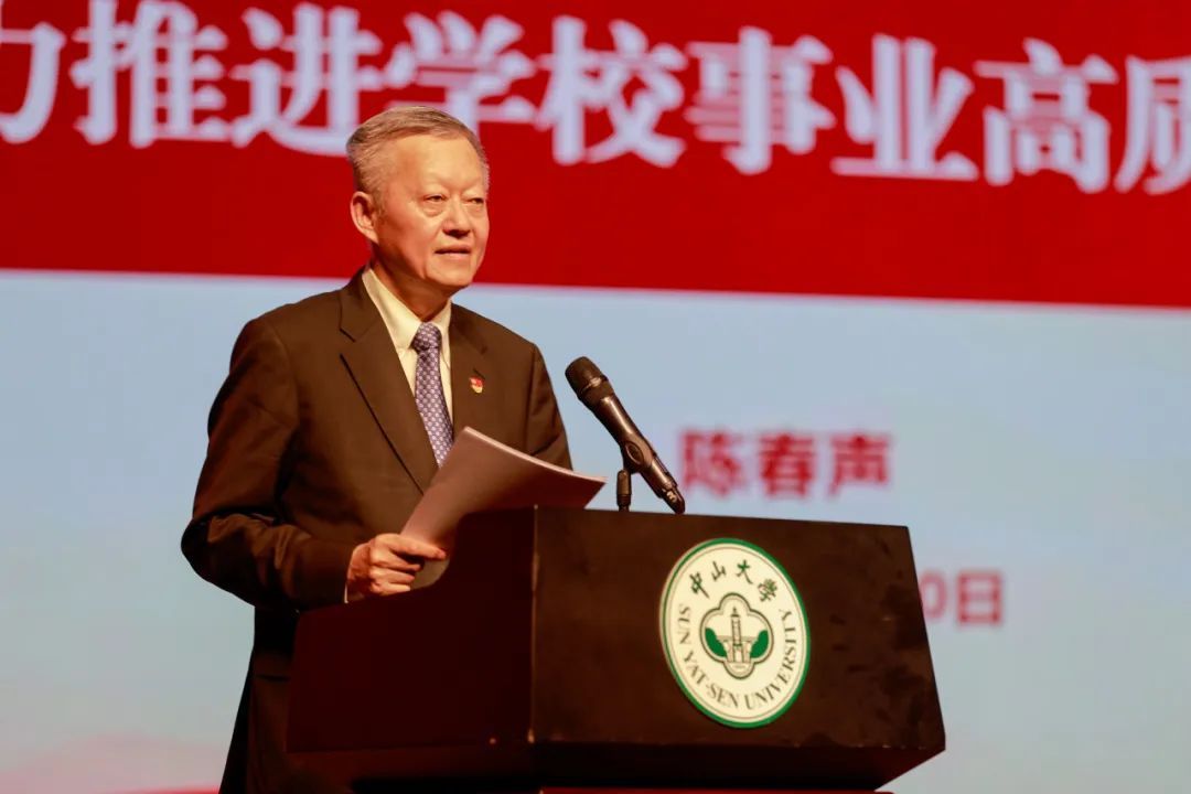 陳春聲書記指出,黨的十八大以來,學校堅持以習近平新時代中國特色社會主義思想為指導,堅定不移走內涵式發展道路,以服務國家重大戰略需求為導向,推進建設中國特色世界一流大學。他表示,進入新時代新征程,要塑造辦學新格局,培養拔尖創新人才,強化有組織科研,聚力原創性引領性重大科技攻關,推進高水平科技自立自強,以服務高質量發展為牽引,提升學校對粵港澳大灣區建設的支撐力、貢獻力,始終心懷“國之大者”,緊緊圍繞黨的使命任務,真抓實干、務求實效,推動學校事業進入追求卓越、邁向一流的新時期。