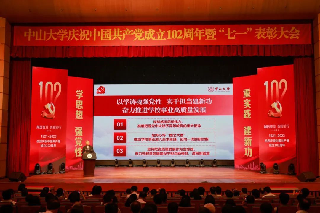 中大新聞網廣州7月1日電(記者邱清萌)6月30日,圍繞深入學習貫徹習近平新時代中國特色社會主義思想,學習貫徹黨的二十大精神和習近平總書記關于建設教育強國的重要論述,特別是關于高等教育的重要講話和重要指示批示精神,中山大學黨委書記陳春聲以“以學鑄魂強黨性 實干擔當建新功 奮力推進學校事業高質量發展”為題,在中山大學慶祝中國共產黨成立102周年暨“七一”表彰大會上,為學校全體黨員同志講授專題黨課,勉勵大家心懷“國之大者”,牢記職責使命,扎實推進學校事業高質量發展。