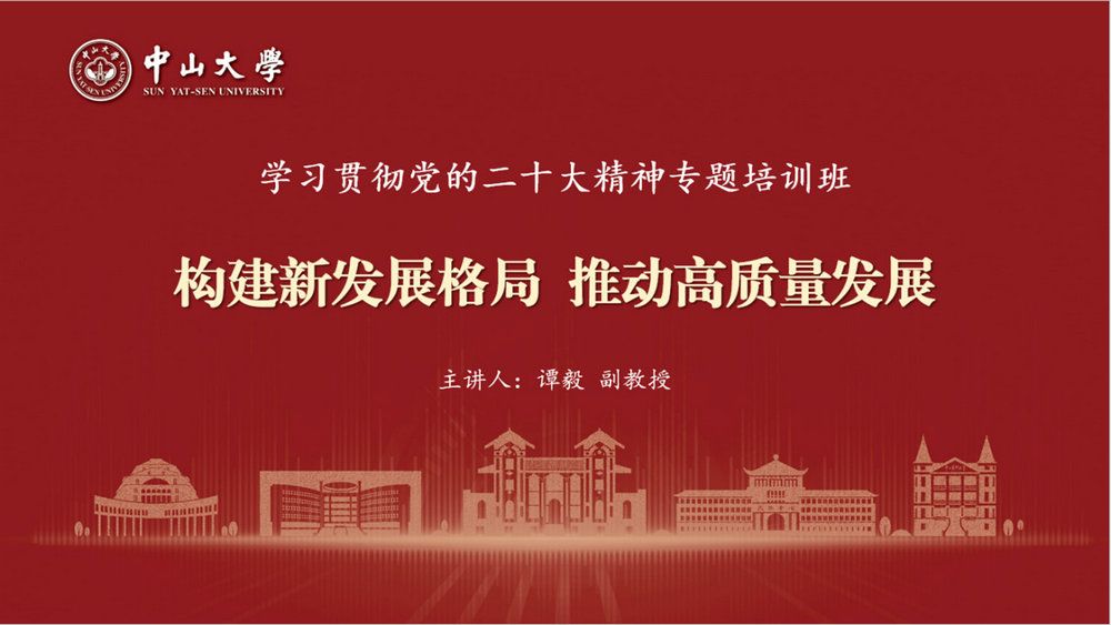 中大新聞網(wǎng)廣州1月13日電(通訊員陳美琪)1月13日上午,中山大學(xué)學(xué)習(xí)貫徹黨的二十大精神專題培訓(xùn)班第四講在線順利舉辦。馬克思主義學(xué)院譚毅副教授受邀作“構(gòu)建新發(fā)展格局,推動高質(zhì)量發(fā)展”專題輔導(dǎo)報告。學(xué)校中層領(lǐng)導(dǎo)人員、黨支部書記共1200余人參加培訓(xùn)。校黨委組織部部長楊曉萌主持會議。