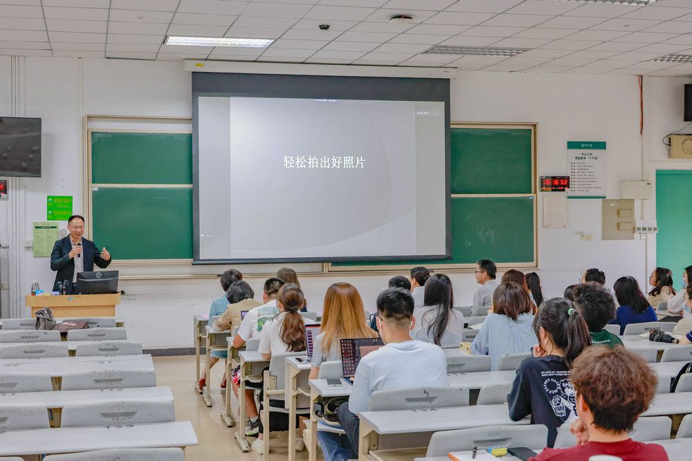 他還從技術(shù)層面具體剖析了經(jīng)營(yíng)畫(huà)面的四大要素:一是要把握構(gòu)圖,掌握相關(guān)規(guī)律和方法,在拍攝時(shí)合理設(shè)計(jì)構(gòu)圖,或通過(guò)后期剪裁的方法去完善構(gòu)圖;二是要把握光線,充分了解光的方向、質(zhì)感、來(lái)源等,可以通過(guò)觀摩畫(huà)作、電影等方式來(lái)學(xué)習(xí)如何利用光線;三是把握景深,通過(guò)控制和拍攝主體的距離、利用前景后景等,突出主體人物;四是把握快門(mén),通過(guò)追隨拍攝等小技巧,在運(yùn)動(dòng)等場(chǎng)景中充分保留畫(huà)面細(xì)節(jié)。最后,他詳細(xì)解答了中大師生提出的在調(diào)研、會(huì)議等常見(jiàn)工作場(chǎng)景中遇到的攝影問(wèn)題,還分享了他個(gè)人總結(jié)的“10項(xiàng)注意”:突出主要人物,兼顧互動(dòng)對(duì)象,適當(dāng)照顧環(huán)境,構(gòu)圖留有余地,焦點(diǎn)必須清晰,曝光寧欠勿過(guò),器材事先檢查,熟悉活動(dòng)流程,現(xiàn)場(chǎng)場(chǎng)地試拍,臺(tái)風(fēng)穩(wěn)重大方。