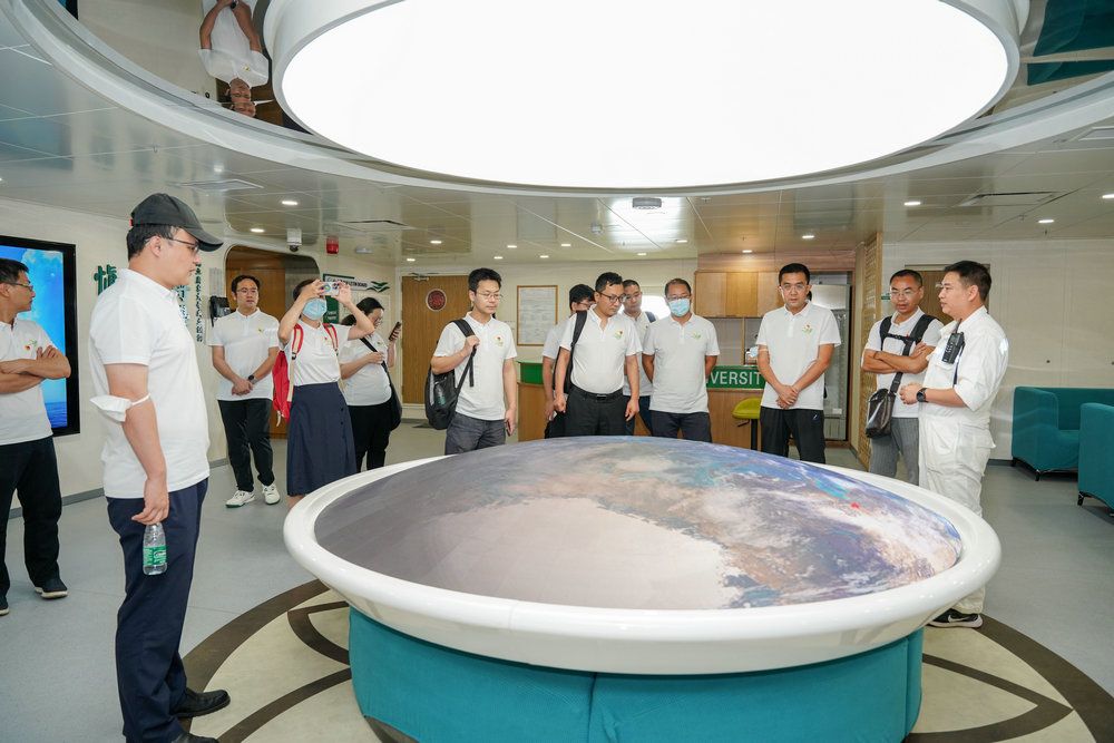 5月21日下午,培訓班學員考察了停泊于珠海的“中山大學”號海洋綜合科考實習船。學校目前擁有6800噸“中山大學”號海洋綜合科考實習船、“中山大學極地”號破冰船、“珠海云”智能無人系統母船,具有卓越的科技競爭力。“中山大學”號是目前國內設計排水量最大、綜合科考性最強、創新技術亮點最多的新一代現代化綜合科考船,也是集多學科、多功能、多技術手段為一體的海上移動科研平臺與人才培養基地,被稱為中山大學“第六校園”。在金德飛船長及其團隊的講解引導下,學員們參觀了駕駛室、實驗室,了解科考船的出行任務和科技創新,了解到每次出航必建立臨時黨支部,把支部建在科考船上,發揮臨時支部的戰斗堡壘作用和黨員先鋒模范作用。站在甲板上,眺望大海,學員們切身體會到科技理念與人文關懷的交相輝映,全面認識了學校事業布局謀篇的綜合進展,由衷表示要始終心懷“國之大者”、力持國之重器,以科研、教學、服務社會的知行合一,參與學校事業的高質量內涵式發展,積極擔當作為,迎接百年校慶。