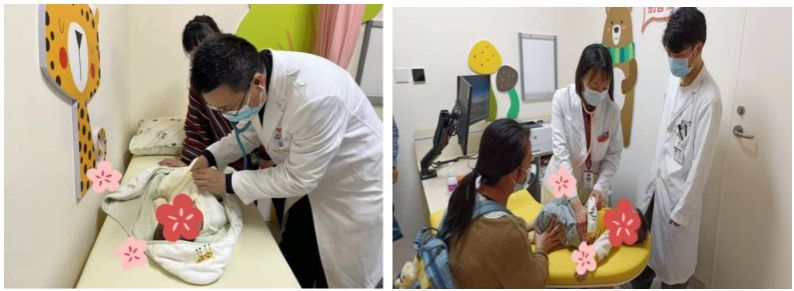 副主任醫師沈振宇、主任醫師余慕雪在給患兒做檢查
