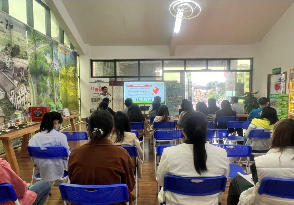 在連州豐陽電子商務中心,學校派駐連州市豐陽鎮(zhèn)幫扶工作隊、大富頭村駐村第一書記黃旭俊向大家介紹黨中央鄉(xiāng)村振興的相關政策、廣東省鄉(xiāng)村振興的三大目標與工作機制,同時結合豐陽鎮(zhèn)產業(yè)、人口、面積、脫貧情況等多方面情況,詳細講解了近幾年學校在豐陽鎮(zhèn)鄉(xiāng)村振興工作中因地制宜融合創(chuàng)新發(fā)展模式,在鄉(xiāng)村振興工作中所取得的成績。
