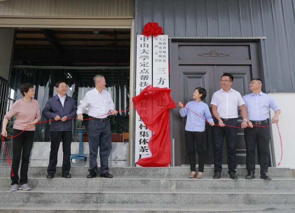 陳春聲書記、高松校長現場考察紅塘村集體茶廠(逸仙茶廠),了解生產線建設、產品開發、品牌打造、帶動村民增收等情況,為逸仙茶廠、中山大學“校友之家”揭牌,聽取學校派駐紅塘村駐村第一書記張良友工作情況匯報。自2018年定點幫扶紅塘村以來,學校已派出三任駐村第一書記,直接投入幫扶資金近300萬元。2023年4月,學?!懊利惣t塘 共同締造”樣板工程,獲評第七屆教育部直屬高校精準幫扶和創新試驗典型項目。