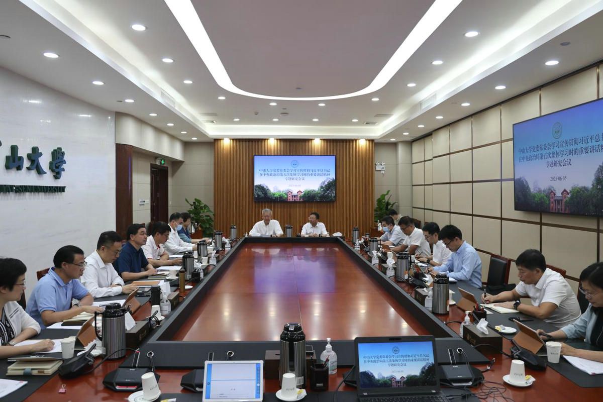中大新聞網(wǎng)廣州6月7日電(記者余婷)6月5日,中山大學(xué)召開黨委常委會,專題學(xué)習(xí)貫徹習(xí)近平總書記在中共中央政治局第五次集體學(xué)習(xí)時的重要講話精神,并部署有關(guān)工作。會議由校黨委書記陳春聲主持。校黨委副書記、校長高松,校黨委常委及其他校領(lǐng)導(dǎo)、相關(guān)職能部門負責(zé)人參加會議。