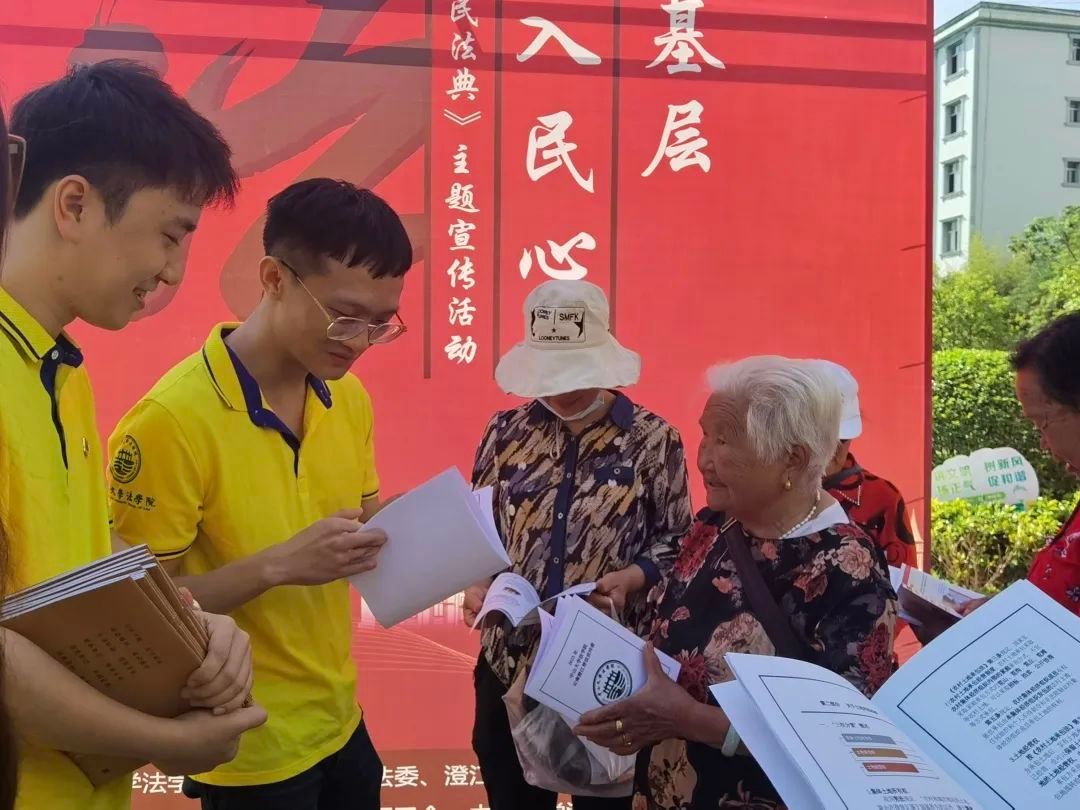 為推進主題教育落實落細,在民法典頒布三周年、第三個“民法典宣傳月”之際,法學院師生突出實踐導向,踐行服務宗旨,利用學科和專業優勢,積極開展普法宣傳志愿服務。面向澄江市“法律明白人”、澄江市民、云南大學學生等多個群體,宣講習近平法治思想、宣傳民法典,覆蓋人數600余人次,把實事辦實,把好事辦好,為促進西部地區法治建設與鄉村振興發展,助力法治中國建設添磚加瓦。