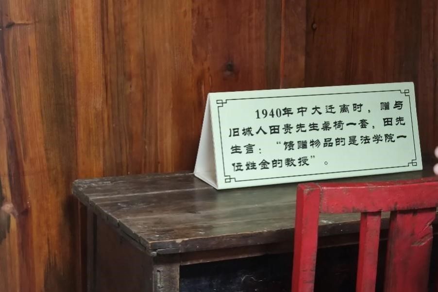 “1940年中大遷離時,贈與舊城人田貴先生桌椅一套,田先生言:‘饋贈物品的是法學院一位姓金的教授’”。中山大學澄江辦學紀念館層青閣里,一套久經風霜的桌椅見證著中大與澄江的歷史情緣,更維系著法學院與澄江的深厚情誼。1939年初,抗戰烽火遍布中華大地,國難校難當前,中大師生幾經輾轉來到千里之外的澄江土地上,或借用古廟寺院、或自制簡易茅舍,因陋就簡地在滇南山城開始了近兩年的開學復課之旅。縱使條件艱苦,師生們因地制宜,以向上的心態、昂揚的斗志開展各種形式的教學活動,同時還為澄江當地移風易俗、發展經濟和完善醫療服務等提供助力,造福當地百姓。