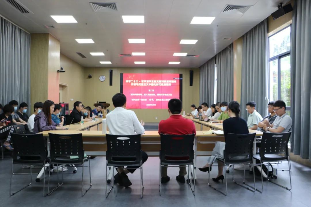 中大新聞網(wǎng)訊(通訊員劉瑞淇)為深入開展學(xué)習(xí)貫徹習(xí)近平新時(shí)代中國特色社會(huì)主義思想主題教育,中山大學(xué)哲學(xué)系黨委組織了主題教育黨支部對(duì)談系列活動(dòng)。本次活動(dòng)以“共學(xué)”與“對(duì)談”為方式,聚焦于黨的二十大報(bào)告中“開辟馬克思主義中國化時(shí)代化新境界”的內(nèi)容,分三大主題展開對(duì)談學(xué)習(xí)。在認(rèn)真學(xué)習(xí)黨的二十大報(bào)告的基礎(chǔ)上,引導(dǎo)學(xué)生黨員將理論學(xué)習(xí)與專業(yè)學(xué)習(xí)緊密結(jié)合,將黨和國家的戰(zhàn)略要求與自身的專業(yè)研究緊密結(jié)合,培養(yǎng)學(xué)生黨員形成良好的問題意識(shí)和系統(tǒng)思維;同時(shí)加強(qiáng)各黨支部之間的交流,讓學(xué)生黨員在交流中開闊視野,互學(xué)互鑒,共同進(jìn)步。